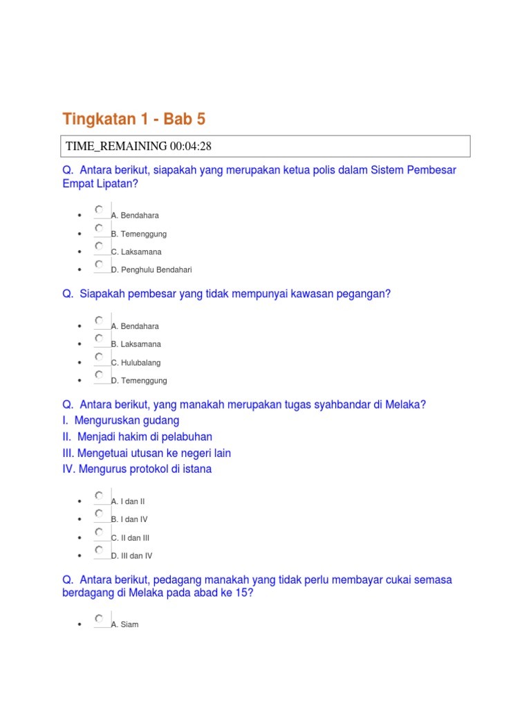Quiz Sejarah Tingkatan 4 Bab 1 Kbsm Malaya